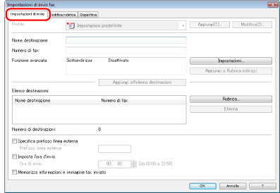 Se la voce [Prima di aggiungere la destinazione all'[Elenco destinazioni] inserire il n. de fax] è selezionata nella finestra di dialogo [Impostaz.protezione] della scheda [Speciale], selezionando [Aggiungi all'elenco destinazioni] viene visualizzata la finestra di dialogo [Conferma destinazione]. Per informazioni dettagliate, consultare la Guida in linea (vedere " Visualizzazione della Guida in linea").