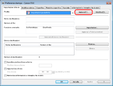 Per modificare o cancellare un profilo, fare clic su [Modifica] a destra di [Profilo] nella scheda [Impostazioni di invio], [Copertina] o [Speciale].