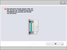 Wenn ein Display mit der Aufforderung zur Anpassung der Führungsschienen erscheint, justieren Sie die Position der Führungsschienen → Definieren Sie das Papierformat → Berühren Sie die Taste [OK].