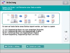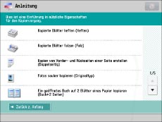 Dies ist das erste Display, das nach Berühren der Taste [Anleitung] angezeigt wird.
