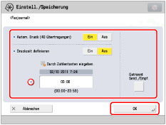 Definieren Sie die einzelnen Einstellungen → Berühren Sie die Taste [OK].