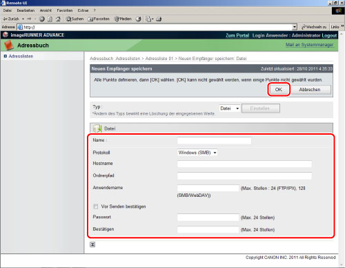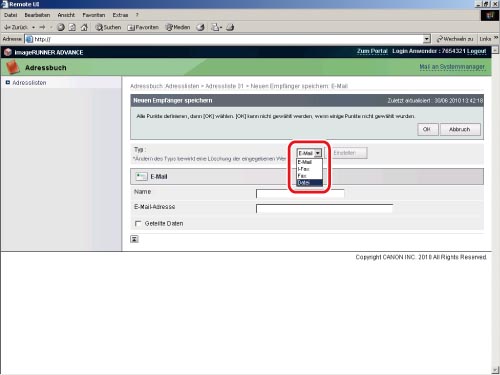 Sie können eine E-Mail-Adresse effektiv über Remote UI registrieren.