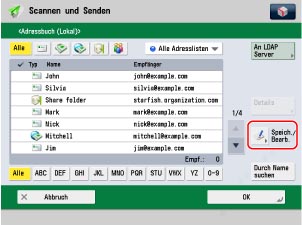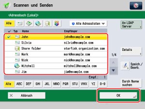 Wählen Sie einen registrierten Empfänger → Bestätigen Sie durch Berühren der Taste [OK].