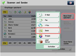 Berühren Sie die Taste [Neue Empf. speichern] → [Datei].