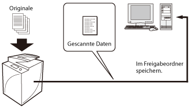 In diesem Abschnitt finden Sie Informationen zum Erstellen eines "PDF-Scan"-Freigabeordners auf einer Windows-Festplatte. Dieser Ordner ist über SMB-Protokoll mit dem System verbunden, und Sie können gescannte doppelseitige Dokumente als PDF-Datei an diesen Ordner senden.