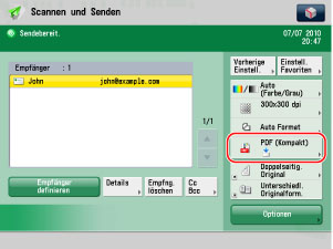 Geben Sie den Empfänger an → Berühren Sie die Taste [Dateiformat].
