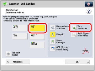 Wählen Sie [PDF] → [OCR (Durchsuchb. Text)] → [OK].