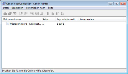 Mit dem Canon PageComposer können Sie mehrere Dokumente, die unter Verwendung verschiedener Anwendungen erstellt wurden, als ein Dokument bearbeiten und drucken.