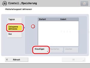 Berühren Sie die Taste [Zeitspanne definieren] → [Hinzufügen].