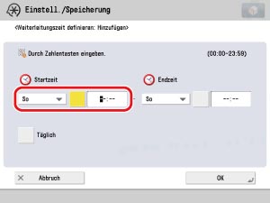 Wählen Sie unter <Startzeit> die Option [Mo] → Berühren Sie die Taste [