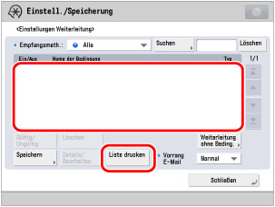 Nach Berühren der Taste [Ja] auf dem Bestätigungsdisplay wird die Liste mit den Weiterleitungseinstellungen ausgedruckt.