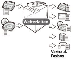 Sie können empfangene Faxmitteilungen automatisch an einen anderen Empfänger weiterleiten lassen. So ist zum Beispiel das automatische Weiterleiten an einen Mitarbeiter an einem anderen Ort kein Problem.