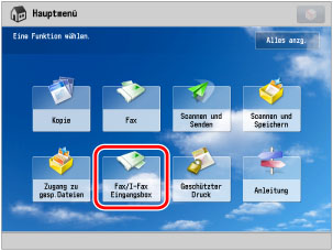 Wählen Sie im Hauptmenü die Taste [Fax/I-Fax Eingangsbox].