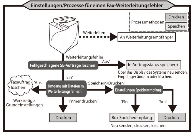 Wenn ein Weiterleitungsfehler auftritt, verarbeitet das System das Fax wie nachstehend beschrieben.