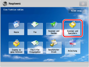 Berühren Sie im Hauptmenü die Taste [Scannen und Speichern].