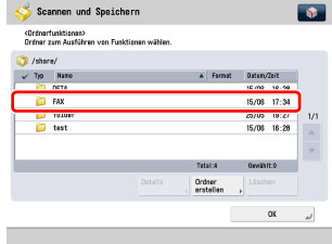 Die Adresse des erstellten Ordners wird im Adressbuch gespeichert.
