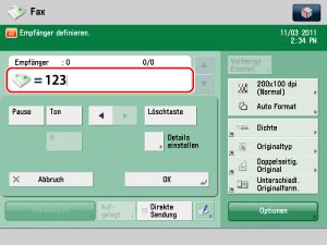 Geben Sie die Faxnummer des Empfängers über die Zahlentasten