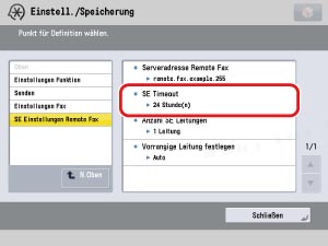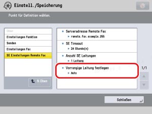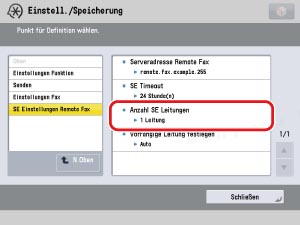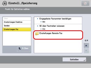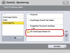 → [Einstellungen Funktion] → [Senden] → [Einstellungen Fax] → [SE Einstellungen Remote Fax].