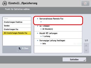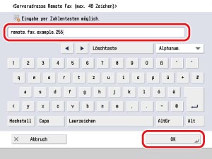 Berühren Sie die Taste [Serveradresse Remote Fax].