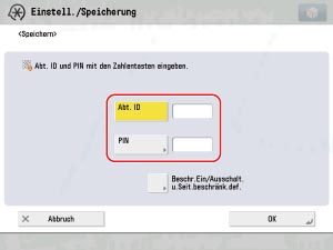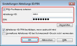 Der Dialog [Einstellungen Abteilungs-ID/PIN] wird angezeigt.