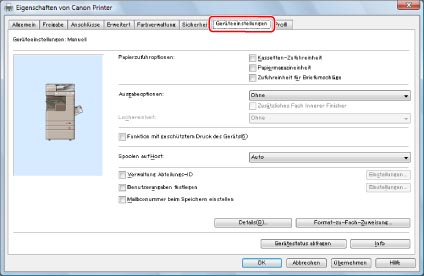 Der Dialog [Geräteeinstellungen] wird angezeigt.