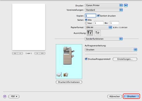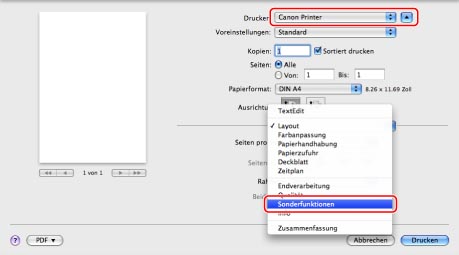 Wählen Sie den Drucker → Wählen Sie [Sonderfunktionen].
