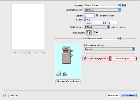 Wählen Sie [Druckauftragsprotokoll] → Klicken Sie auf [Einstellungen].