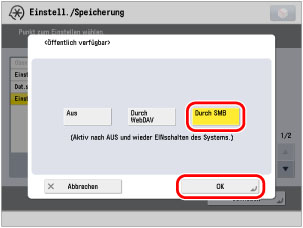 Wählen Sie [Durch SMB] → Berühren Sie die Taste [OK].