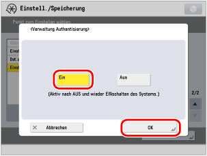 Wählen Sie [Ein] → Berühren Sie die Taste [OK].