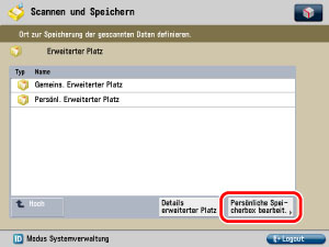 Berühren Sie die Taste [Persönliche Speicherbox bearbeit.].