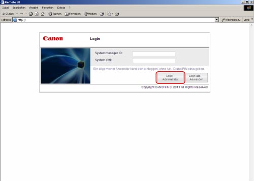 Geben Sie die folgende URL in Ihren Web Browser ein → Klicken Sie auf [Login Administrator].