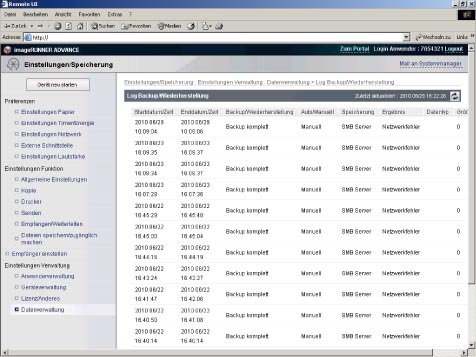 Klicken Sie auf [Log sichern/wiederherstellen] → Prüfen Sie, ob die Datensicherung korrekt ausgeführt wurde.