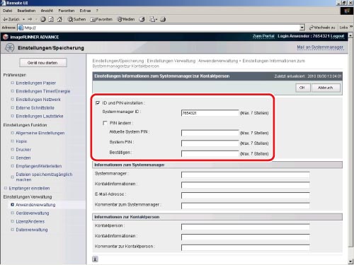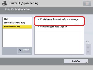 → [Einstellungen Verwaltung] → [Anwenderverwaltung] → [Einstellungen Informationen Systemmanager].