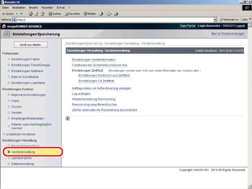 → [Einstellungen Verwaltung] → [Geräteverwaltung].