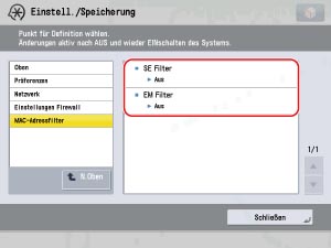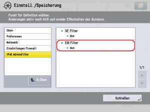 Berühren Sie die Taste [IPv6-Adressfilter] → [EM Filter].