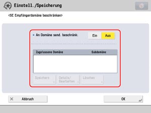 → [Einstellungen Funktion] → [Senden] → [Einstellungen E-Mail/I-Fax] → [SE Empfängerdomäne beschränken].