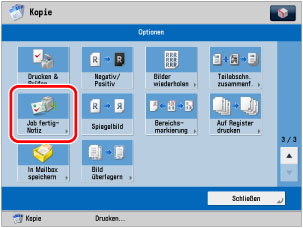 Sobald der reservierte Kopierauftrag abgeschlossen ist, wird eine Job fertig-Notiz an den ausgewählten Empfänger gesendet.