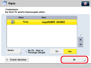 → [Einstellungen Funktion] → [Kopie] → [Remote-Gerät für Tandemkopie speichern].