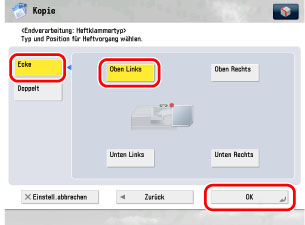 Diese Funktion ist nur verfügbar, wenn der Finisher oder Broschürenfinisher am System oder Tandemdrucker angebracht ist.