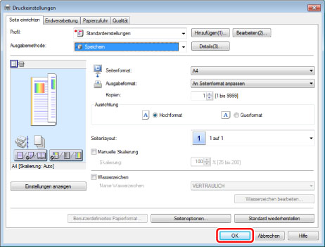 Speichern Sie die erstellten Daten mit Hilfe des Druckertreibers in der Mailbox.