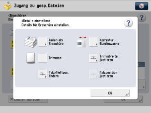 Berühren Sie die Taste [Optionen] → [Broschüre] → [Details einstellen].