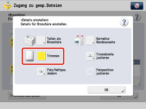 Wenn Sie die Kante der Broschüre trimmen möchten, berühren Sie [Trimmen].