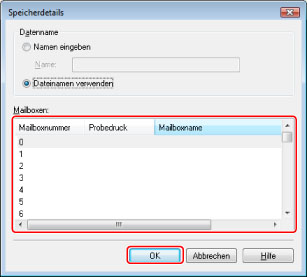 Wählen Sie die Nummer der Mailbox, unter der Sie speichern möchten → Klicken Sie auf [OK].
