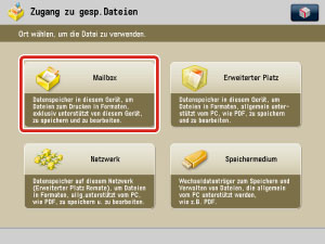 Berühren Sie im Hauptmenü die Taste [Zugang zu gesp.Dateien].