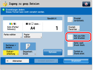 Berühren Sie die Taste [Dat.zus.führ. und drucken].