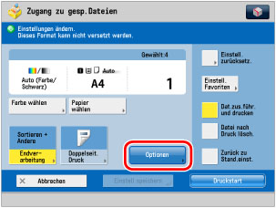 Berühren Sie die Taste [Optionen].