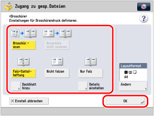 Legen Sie die Einstellungen für den Broschürendruck fest → Berühren Sie [OK].