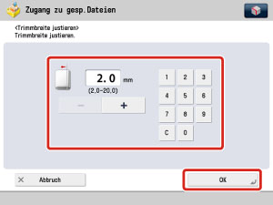 Berühren Sie bei Bedarf [Trimmbreite justieren], um die Trimmbreite einzustellen → Berühren Sie [OK].