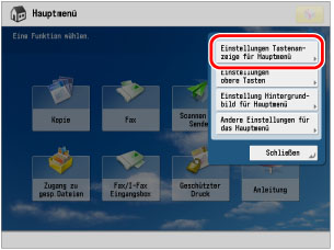 Berühren Sie die Taste [Einstellungen Hauptmenü Tastenanzeige].