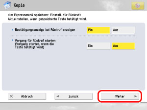 Prüfen Sie die Einstellungen → Berühren Sie die Taste [Weiter].